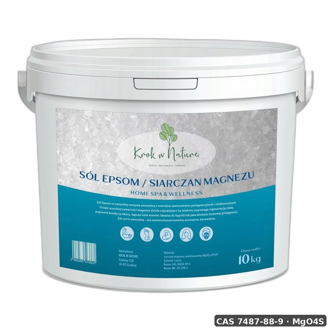 - Inne nazwy: sól gorzka, magnez do kąpieli, heptahydrat siarczanu magnezu